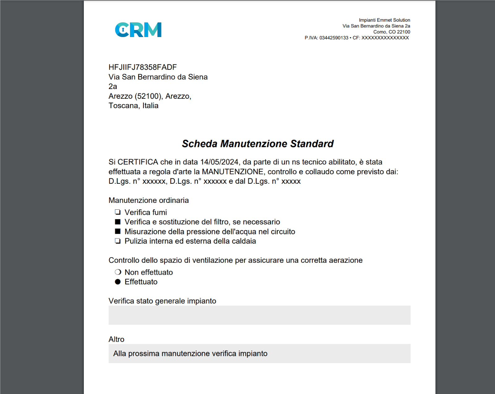 Il sistema mostra il documento compilato nelle varie sezioni. Di seguito è presente un esempio.