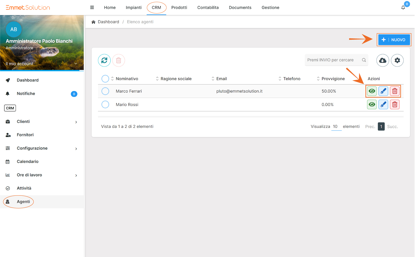 In questa sezione si avrà la panoramica completa di tutti gli agenti presenti nel gestionale.