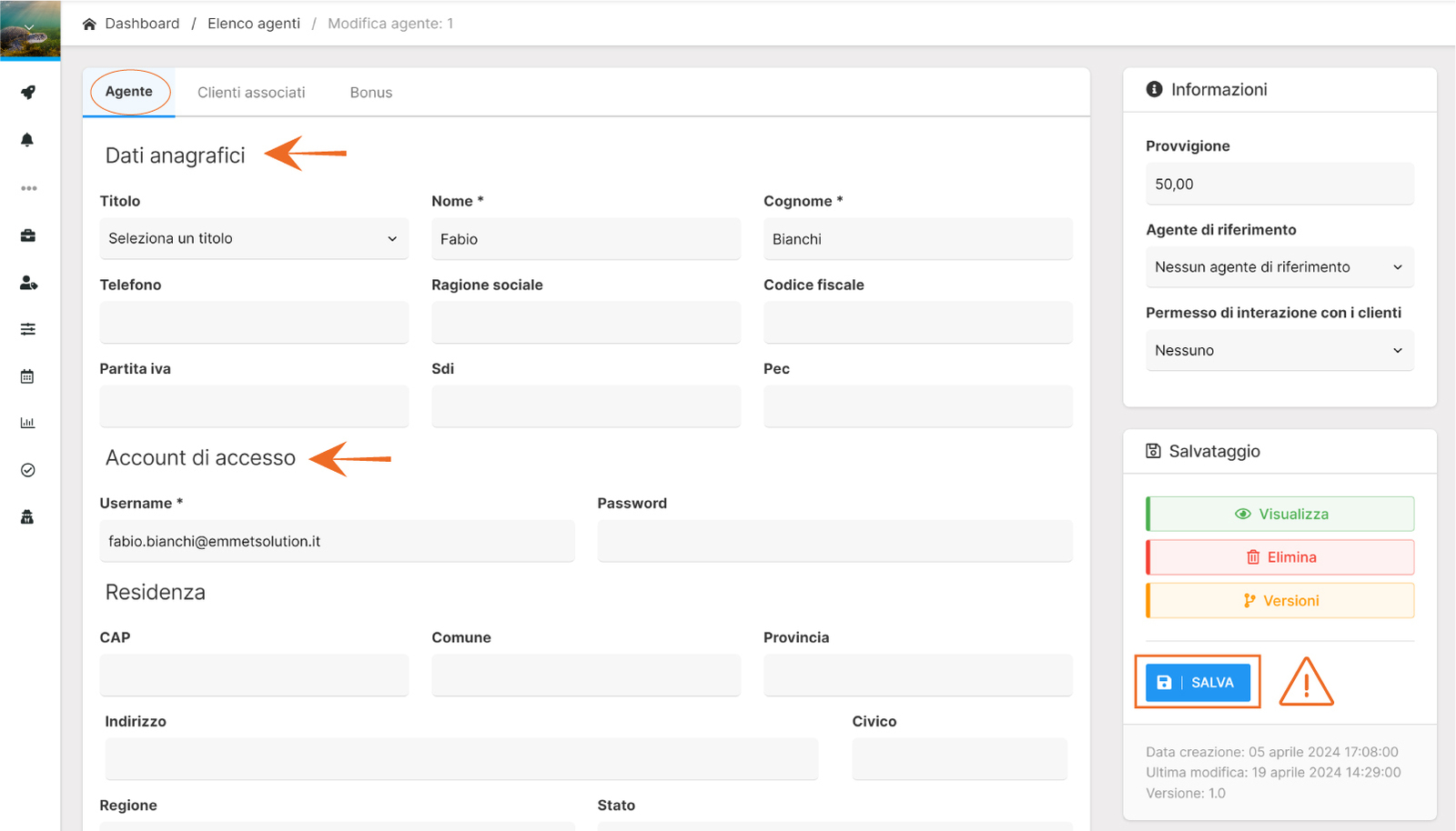 Creazione scheda agente e associazione clienti Ultimo aggiornamento: 30 Aug 2024