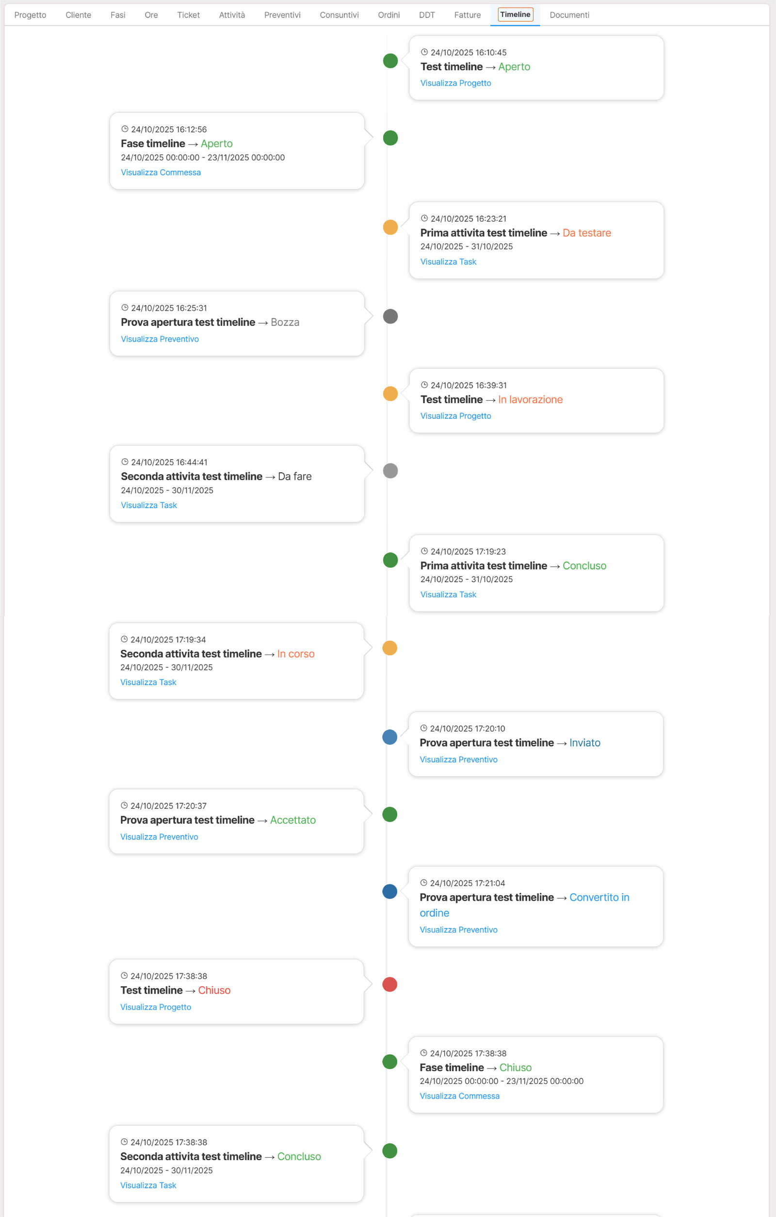 La Timeline consente di avere una visione storica chiara e ordinata dell’evoluzione del progetto, facilitando il controllo delle attività svolte e la ricostruzione delle fasi operative.