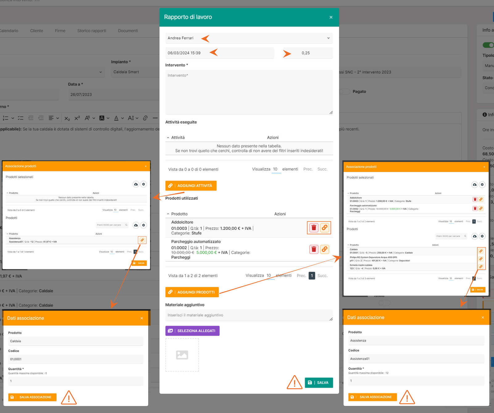 Tieni presente che per ogni intervento è possibile aggiungere uno o più rapportini di intervento. All’interno della scheda relativa all’intervento è presente in alto a destra il bottone “AGGIUNGI RAPPORTO”, clicca e si aprirà modale da compilare.