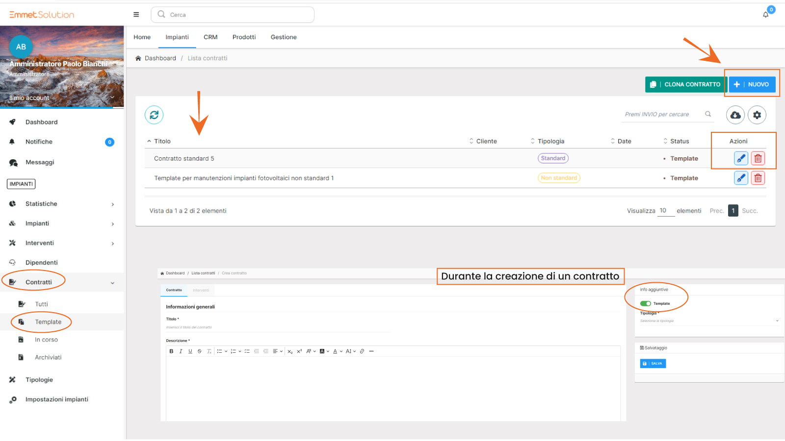 In questa pagina si avrà la panoramica completa di tutti i contratti template caricati.